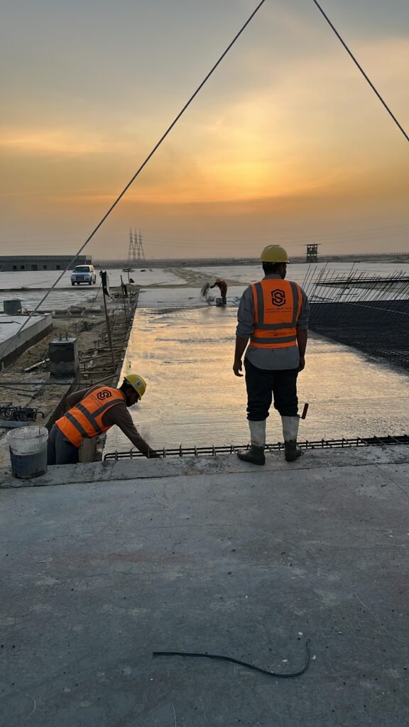 نوع الاعمال : صب ارضية slab on garde سماكة ٢٠ سم مع طبقتين حديد تسليح